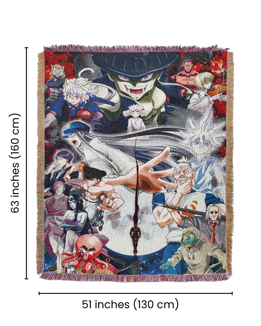 Our blankets are 51" x 63" (130x160cm), the perfect size for a cozy sofa throw or a large wall display